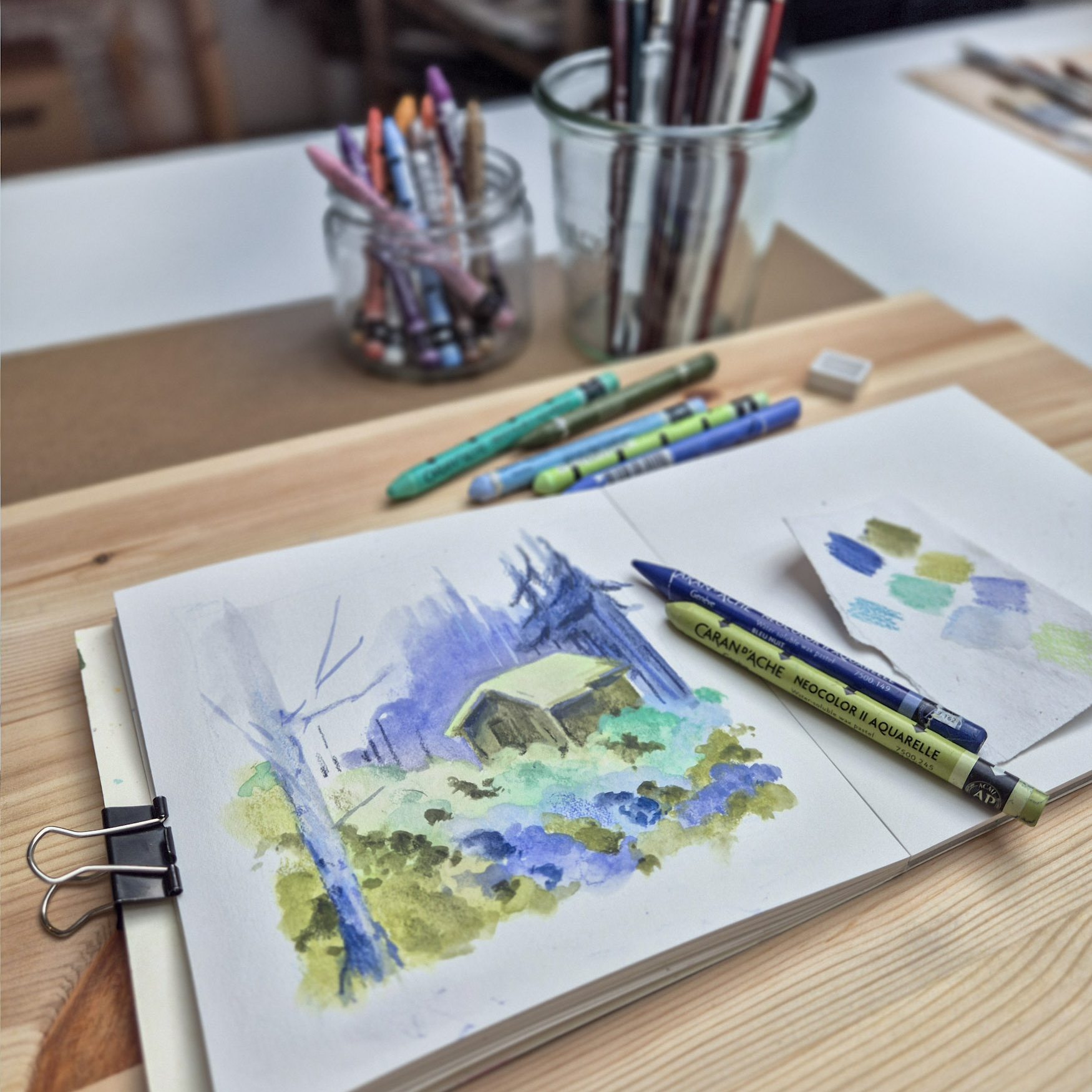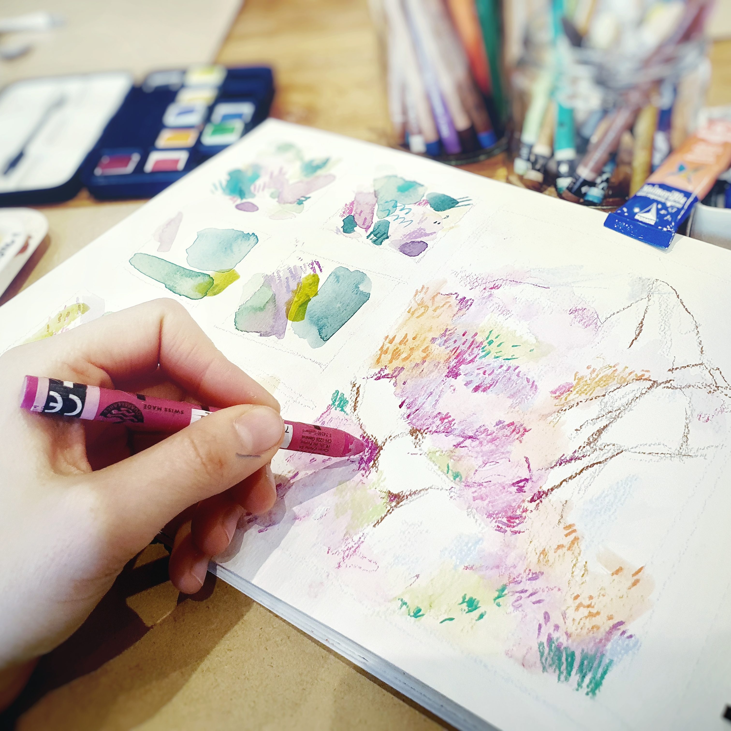 - Medium: pastels aquarellables