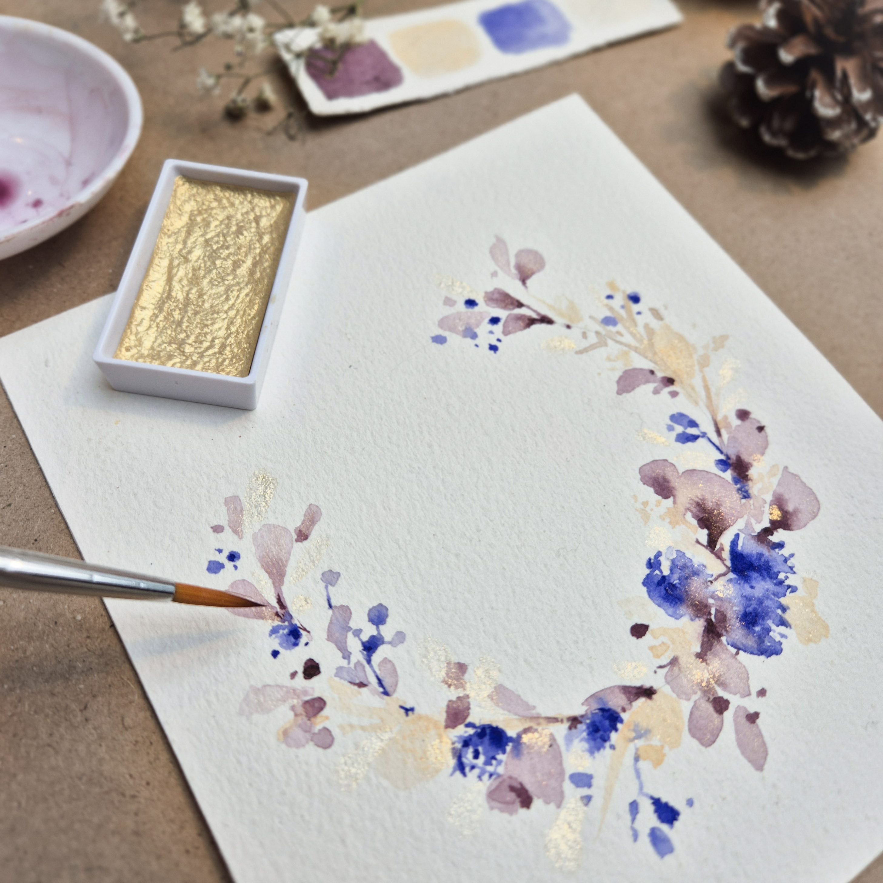 Destiné principalement aux débutants, cet atelier est idéal pour (re)découvrir et explorer les bases de la peinture aquarelle.